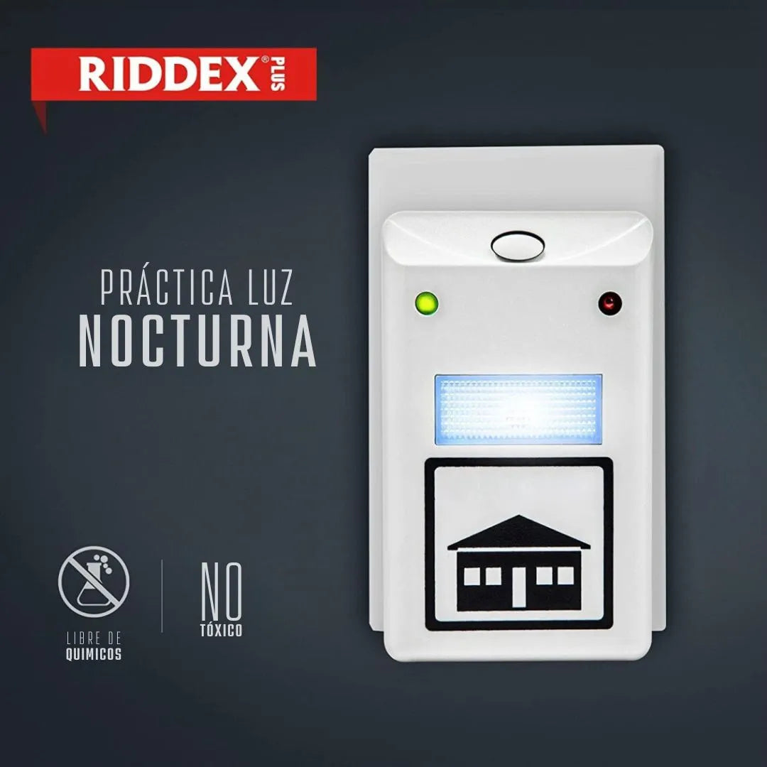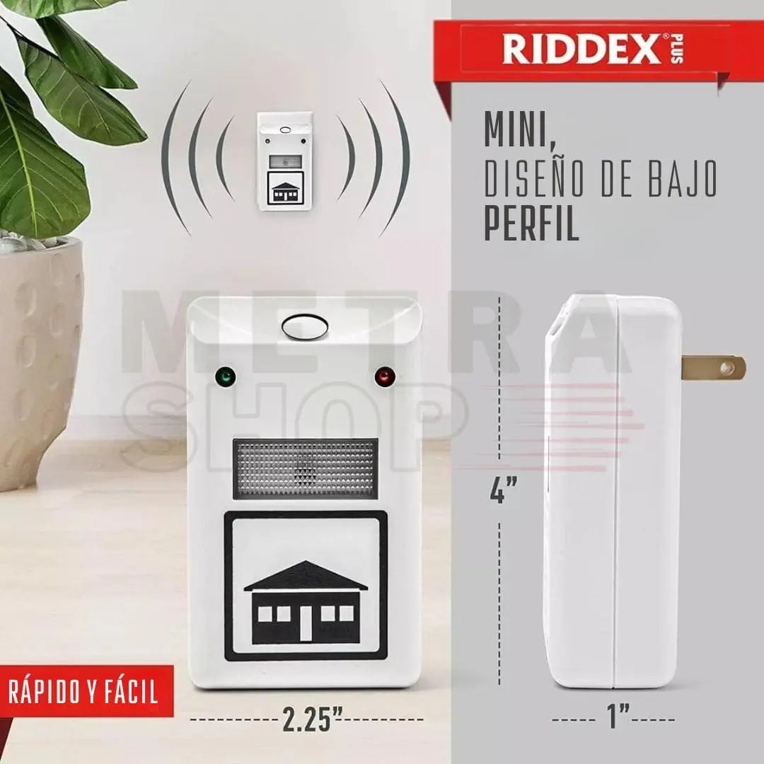 - ✔️ Fácil de usar, solo lo conectas al toma-corriente, cada Riddex cubre 50 metros cuadrados.